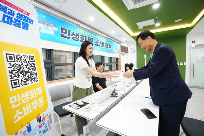 이승로 서울 성북구청장이 민생회복 소비쿠폰 지급을 앞두고 18일 돈암1동 주민센터를 방문해 현장 준비 상황을 점검하고 있다.