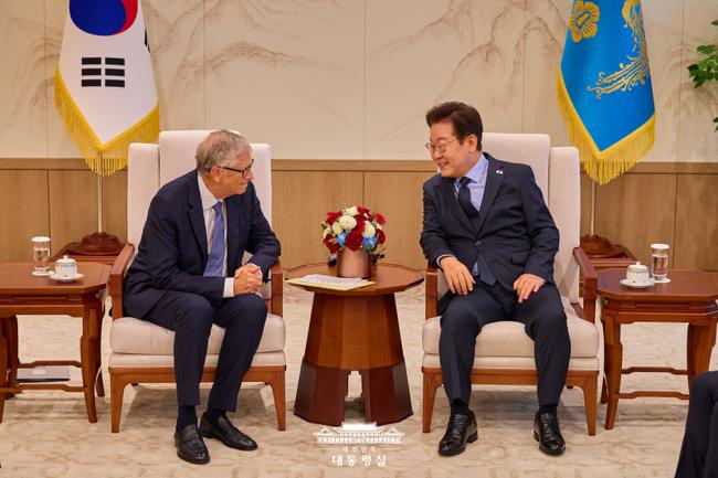 이재명 대통령은 21일 오전 청와대에서 방한 중인 빌 게이츠 게이츠재단 이사장을 만나 글로벌 보건 협력과 인공지능(AI), 소형 모듈형 원자로(SMR) 등 미래 산업 의제에 대해 의견을 교환했다.