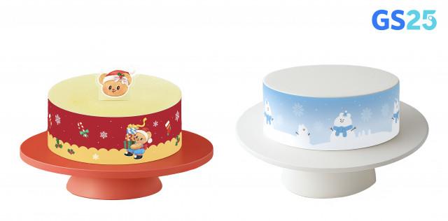 GS25 올해 크리스마스 한정으로 선보이는 홀케이크 2종(왼쪽부터 버터베어슈크림케이크, 매일리얼우유케이크)