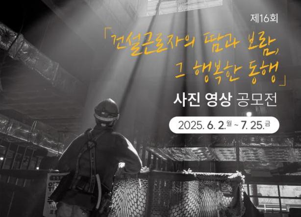건설근로자공제회는 건설근로자의 노고와 보람을 조명하기 위해 ‘제16회 건설근로자 사진·영상 공모전’을 개최하고, 오는 7월 25일까지 온라인으로 참가 접수를 받는다고 밝혔다.